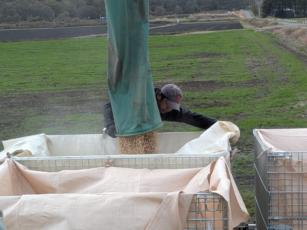 北海道全体では、大豆の収穫量が約44%を占めており、特に十勝地域はその中心地です。大豆は、納豆や豆腐、味噌、醤油などの食品の原料として広く利用されています。2024年の大豆生産実績によると、十勝管内では作付面積が13,000ヘクタールに達し、収穫量は41,100トンに達しています。特に大規模農家は1億円を超える大型コンバインを導入して1時間余りで収穫を終える姿は、中山間地域で活動する私にとって驚きの連続でした。その様子を報告します(斉藤)。