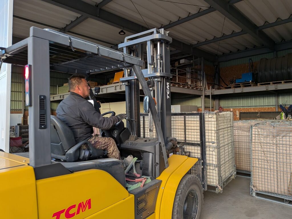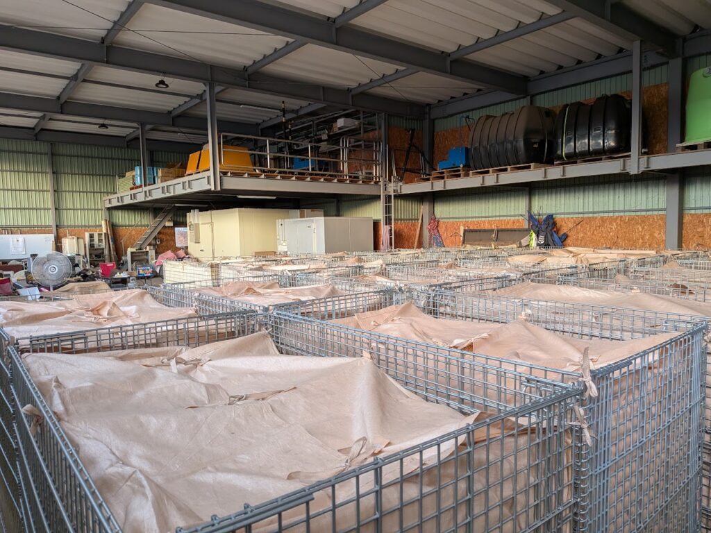 メッシュコンテナ(容量1000kg)の中にあるフレコンバックに大豆を投入