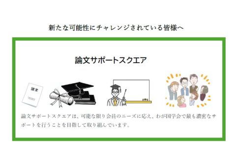 論文サポートスクエアは、可能な限り会員のニーズに応え、わが国学会で最も濃密なサポートを行うことを目指して取り組んでいます。 主な支援内容 (1) 論文の作成支援(本学会や他の学会への投稿論文、修士・博士学位論文) (2)…